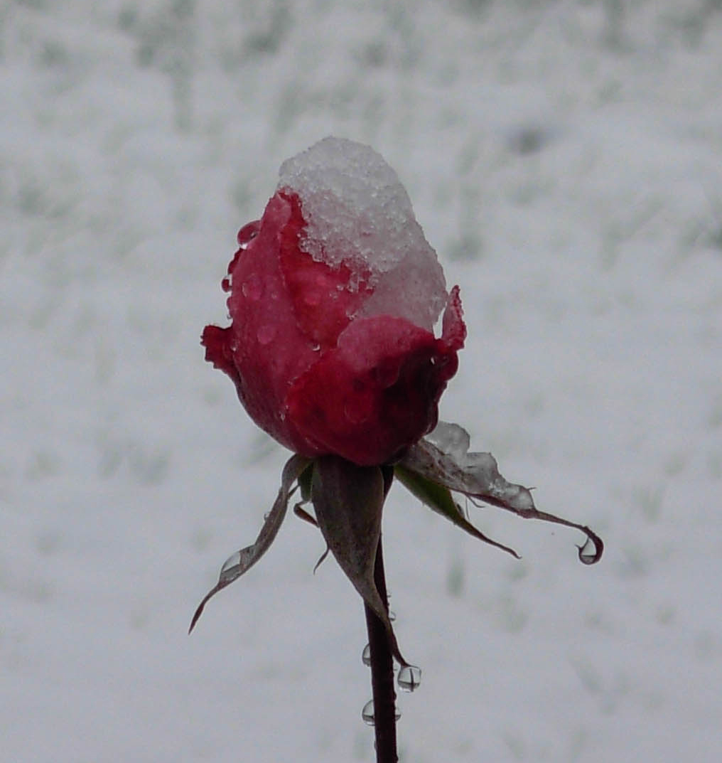 In our last conversation, Duane asked me if I thought the roses would grow back again this year after he trimmed them. You'll notice there are even some new buds, that I captured with a little snow on them.